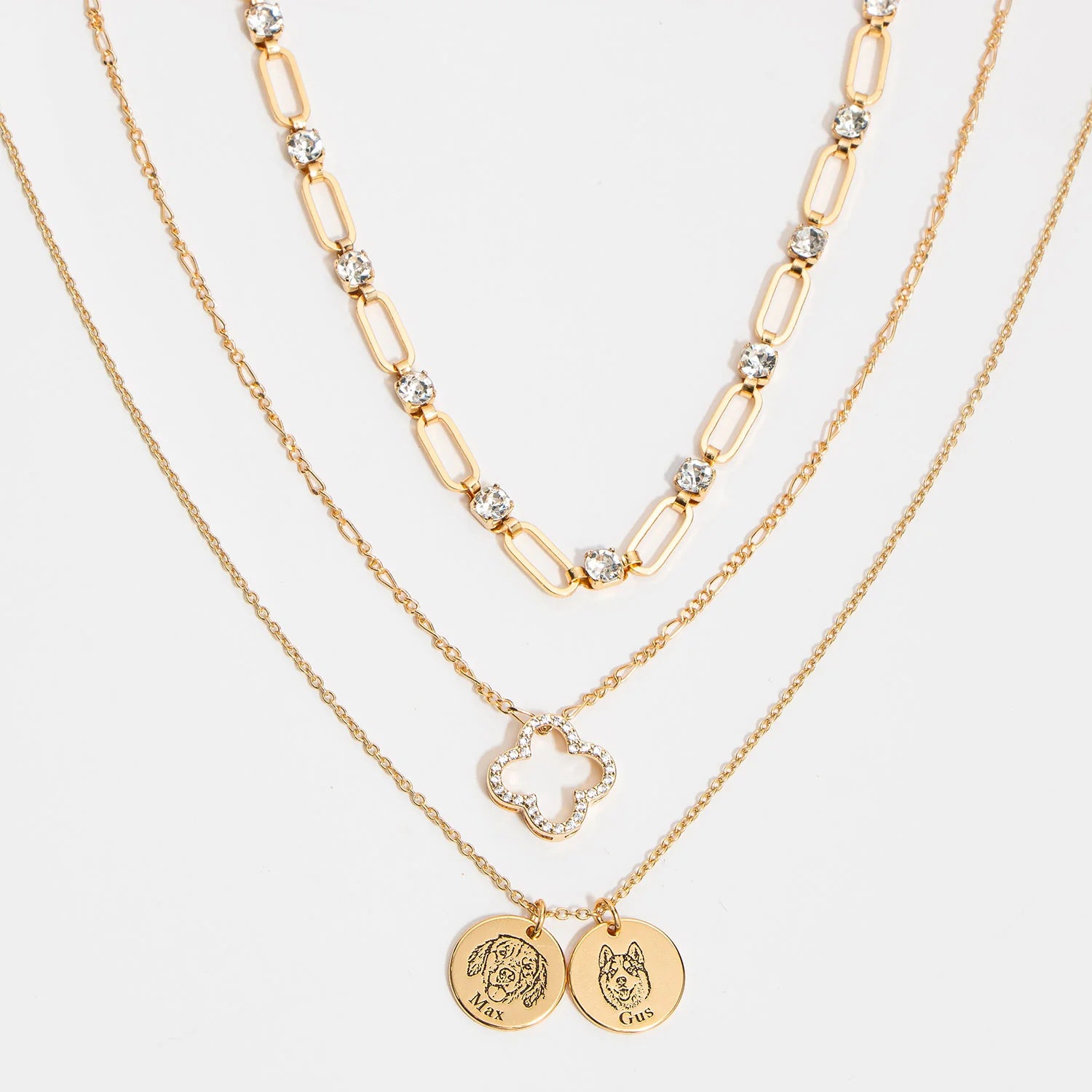 Katmanlı Kolye Setimiz, tarzınızla zahmetsizce uyum sağlayan, günlük görünümünüze bir parıltı ve kişisel bir dokunuş katan, üç güzel tasarımlı kolyeyi bir araya getiriyor.